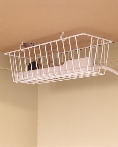 Pár kampóval rögzíthetünk egy kis kosarat a vezetékeknek, és mintha ott se lenne.
